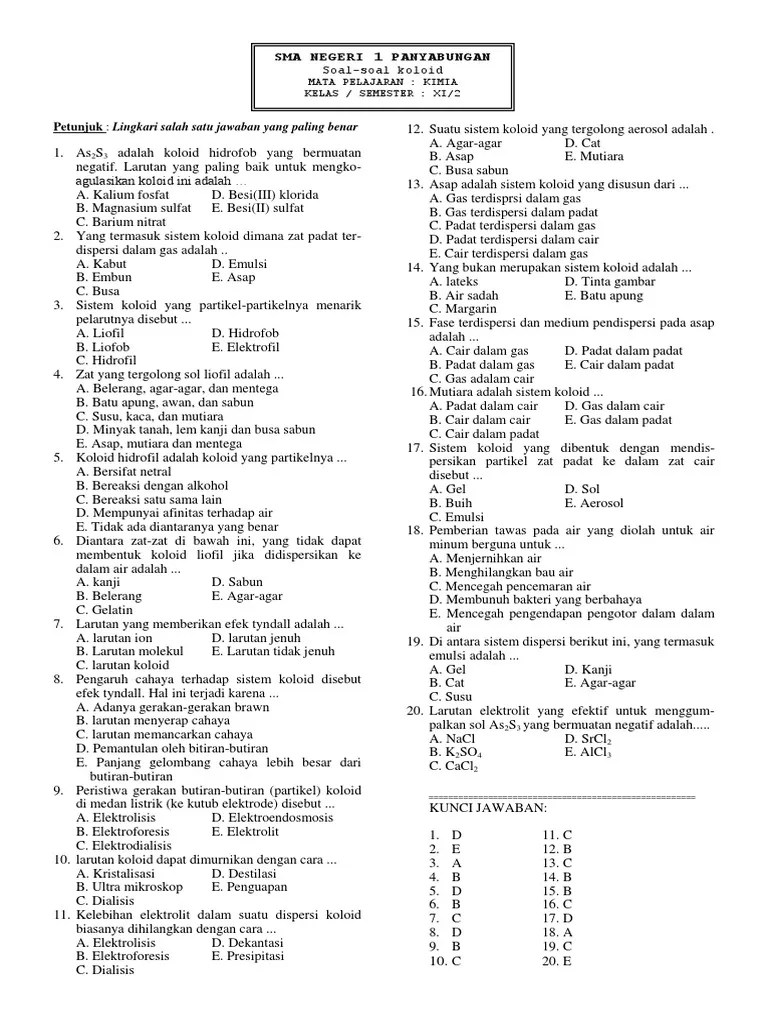 Contoh Soal Dan Pembahasan Koloid Kelas Xi - Soal Dan Pembahasan Koloid : Dispersi zat padat dalam zat cair disebut… a.. Campura n pasir dalam air. Berikut ini adalah kumpulan soal kimia sma kelas 11 bab koloid: Kemampuan berpikir kritis peserta didik kelas xi. Kimia untuk sma dan ma kelas xi . Sman 1 sewon pada materi koloid.